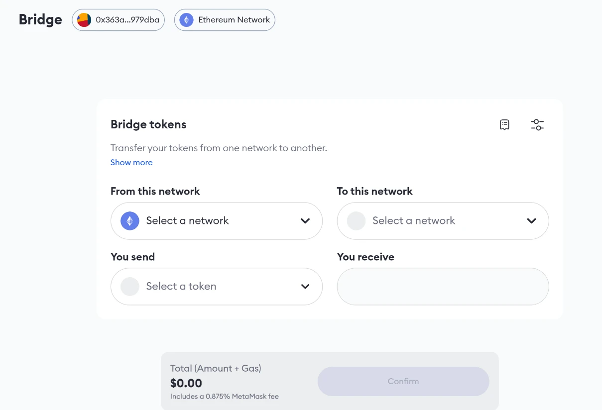 去年 11 月,MetaMask 推出”Bridge“功能。MetaMask Bridges 是一款桥接聚合器,可帮助您找到将代币从一条链转移到另一条链的最佳路线。