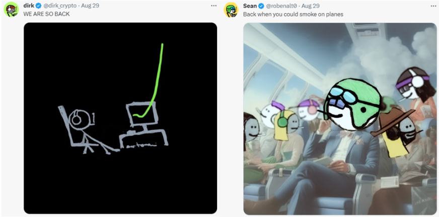 Mfers 是一个自带 meme 的 NFT 项目,创始人 Sartoshi 在项目一开始就通过 CC0 公开申明的方式,将这些作品投入到公共领域,在其将项目的智能合约交给了社区之后,就玩起了「失踪」,直到被社区抛弃,唾弃为「渣男」。在这样一个完全去中心化,没有路线图的 mfers 开放社区中,任何人都可以使用这些 NFT 角色创造任何形式的物品,就像 Sartoshi 在最开始说的那样:「播下种子,让其野蛮生长」。