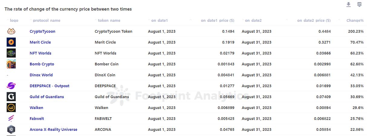 八月,CryptoTycoon 代币表现出色,得到 200.23% 的价格增长。