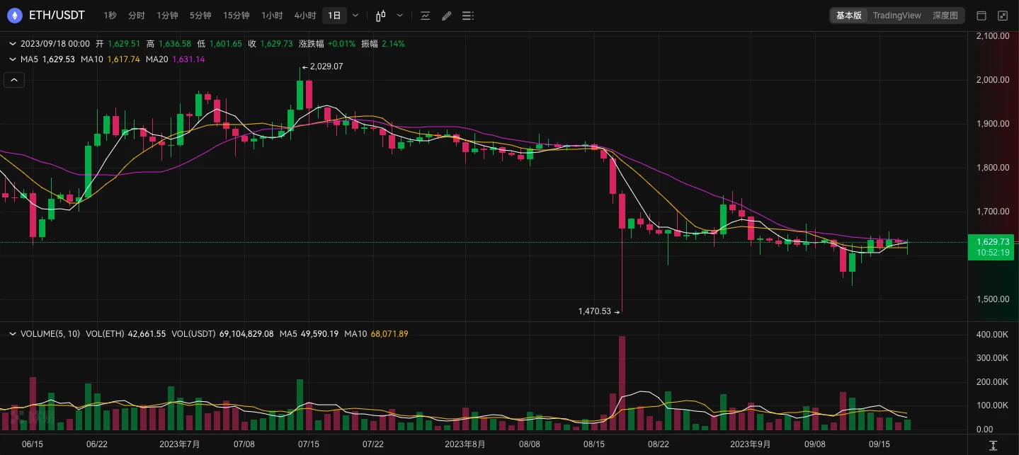 二级市场方面,目前 ETH 价格短时可能继续盘整,支撑位 1600 美元,阻力位 1650 美元。