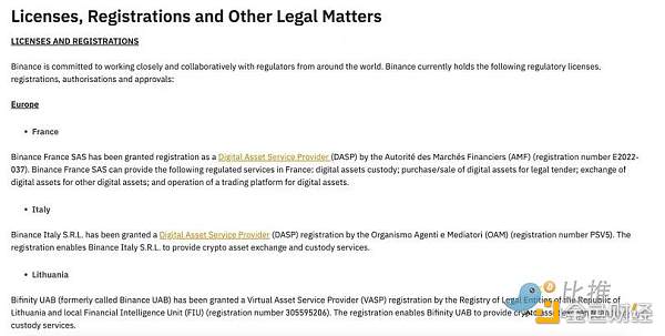 根据 Binance 网站 网发布的信息,Ceffu 被称为 Bifinity UAB,Bifinity 在立陶宛的注册(允许其提供加密货币交易和钱包服务)仍然列在币安网站上,并被列在币安获得的各种监管许可条目下。