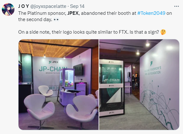 JPEX在Tokens2049仓皇跑路,来源JOY@joyxspacelatte