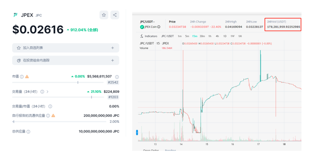 JPC在Coinmarketcap(前)和JPEX交易所(后)的数据对比