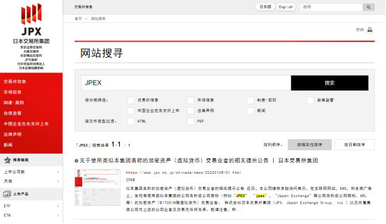 JPX日本交易所澄清与JPEX无关,来源JPX官网
