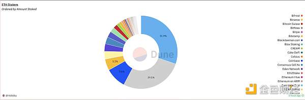 与参与者数量一样重要的是需要勾结的不同参与者数量。例如,Coinbase 运营以太坊验证者的约 7%。Lido 是一个流动性质押提供者,目前占以太坊网络验证者的约 33%。Lido 本身不是验证者,而是与 Coinbase 等区块链领域的可信运营商合作。计算它们代表 Lido 运营的基本份额加上验证者数量,Coinbase 实际上占整个网络的约 12%。