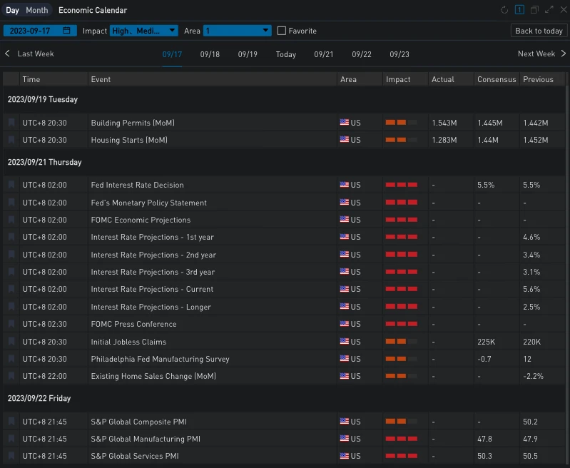 FOMC 会议前夕,两年期美债收益率大幅上行,一度突破 5.1% 关口,收报 5.092% ;十年期收报 4.365% 。 对于本次会议决策,市场普遍预期 FOMC 将维持利率不变,大家关注的焦点会是点阵图的更新及经济预测摘要的公布,以及从鲍威尔后续的问答环节中搜寻年内是否还会再次加息的线索。