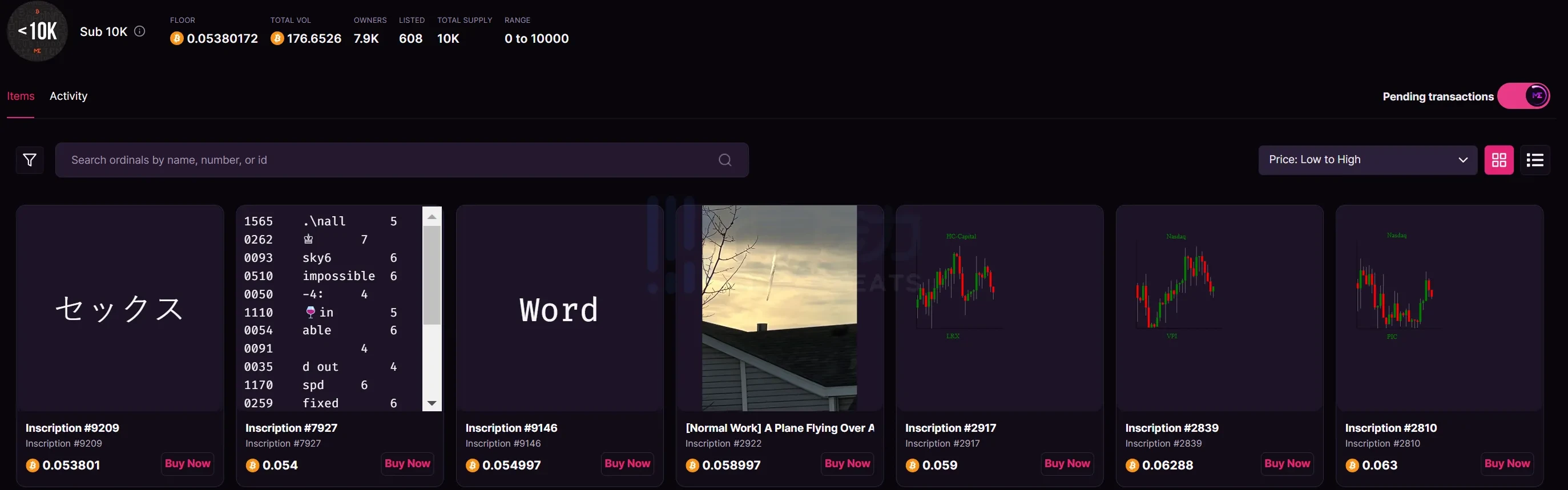 随着 Ordinals 协议的快速发展,铭文编号让比特币 NFT 有了区别于其它链 NFT 的独特炒作叙事。比如「Sub 10K 」,Ordinals 协议诞生以来前 1 万个被刻录的铭文,尽管这些「古早铭文」很大一部分是早期玩家的「测试品」,在艺术内容上没有主题甚至可以堪称「破铜烂铁」,但它们可能就像远古化石,价值是对蛮荒时代的见证。