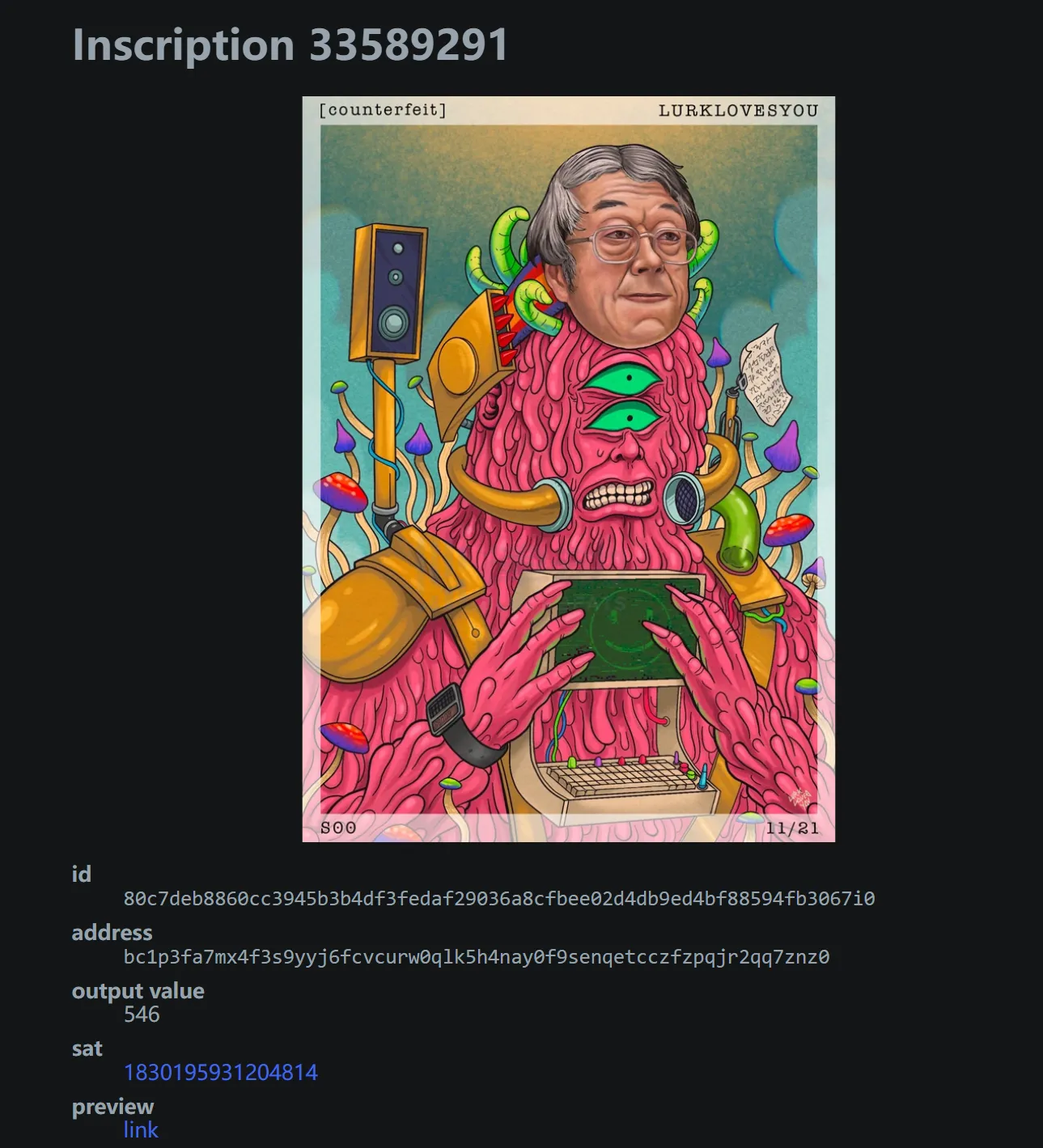 - 在 Ordinals 官方浏览器中检视铭文,不再强调铭文编号。这点就很关键了,放个图看看现在的样子再想一下如果去掉的话是什么样就能感觉到这点有多关键: