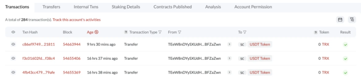 而链上纪录也显示了多笔出金 1 U 的纪录,疑似为用户尝试提现的纪录。