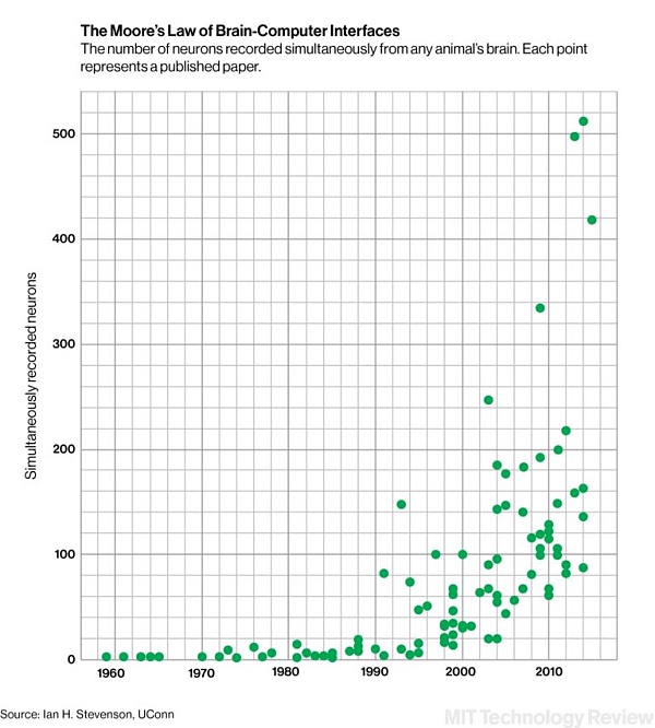 一项名为Stevenson’s Law的研究显示,根据人类可以同时记录的最大神经元数量的增长规律,直到2225年,我们才有可能记录下每个神经元的信息,真正迎来“全脑机互联”的时代。