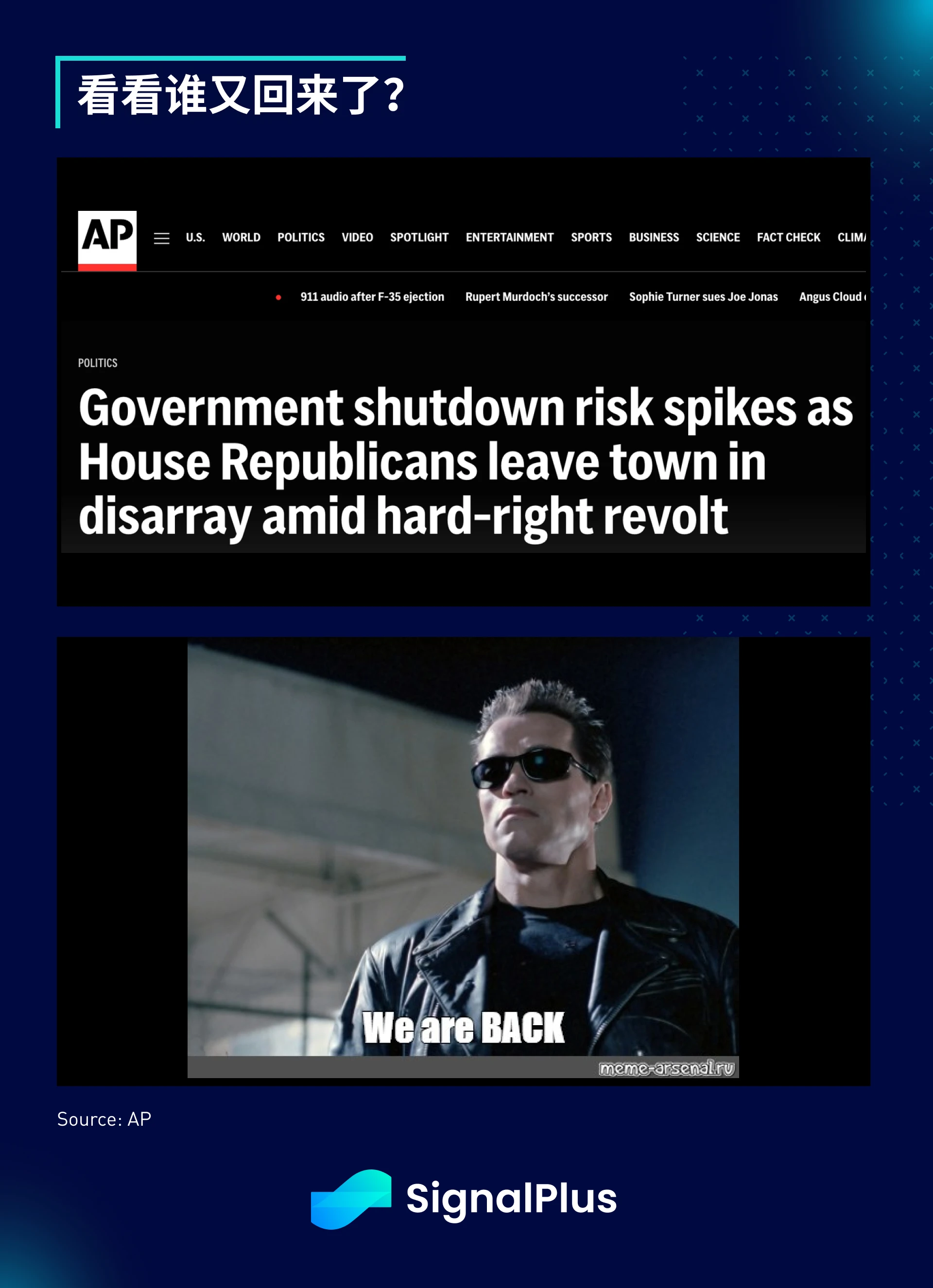 最后,就在我们已经有太多事情需要处理时,美国国会赶在 10 月 1 日的最后期限前,再度上演边缘政策,政府停摆的可能性再次增加,剧本又一次重演,真是太棒了......