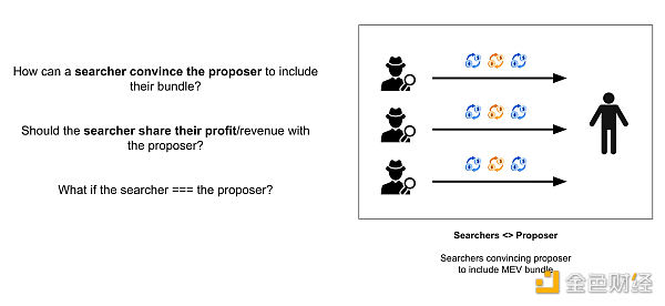 另一方面,如果搜索者不能成为提议者或与提议者勾结,那么它允许我们假设一个搜索者必须相互竞争的环境。 他们的目标是影响提议者并说服他们根据获胜搜索者的偏好对交易列表进行排序。