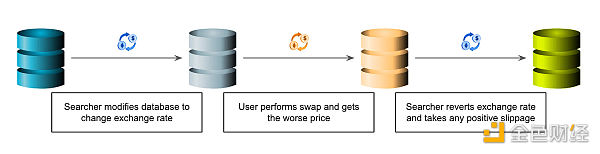 搜索者可以模拟待处理的事务并全面了解未来的数据库状态。 他们的任务是模拟事务并确定未来是否存在对他们有利的数据库状态。 如果是这样,那么他们应该努力使未来的数据库状态发生并捕捉盈利机会。