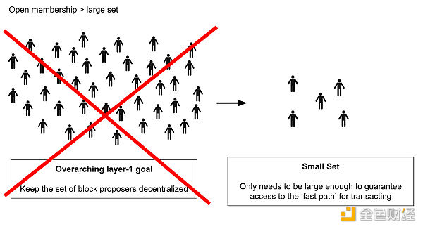 重要的一点是,汇总不一定需要保证数十万参与者的正常运行时间或最大化参与者的去中心化。 首要任务是确保系统可公开访问,并且一个诚实的团体可以在正确的时间介入来保护它。
