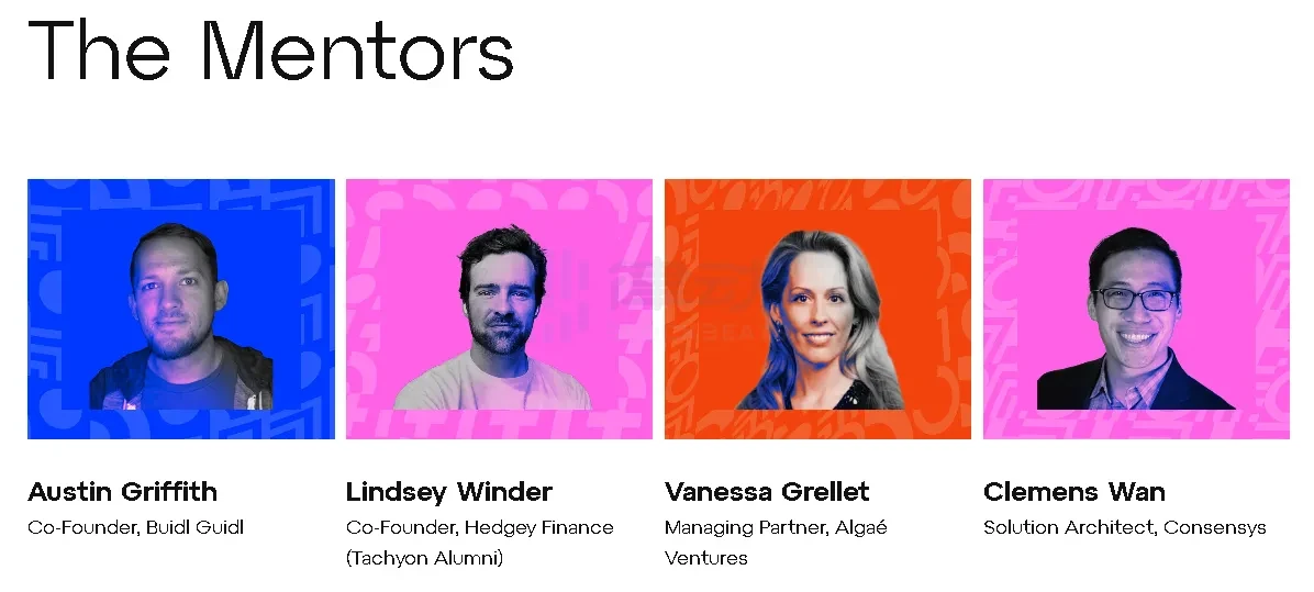Consensys Fellowship 计划团队将选择前 15 名初创公司加入其第一批初创公司,另外 3 家初创公司将列入候补名单。该计划将于 2023 年 11 月 6 日正式开始,并于 2024 年 4 月 5 日举行沉浸式现实生活演示日。另外,该计划将引专业导师,包括 Buidl Guidl 联合创始人 Austin Griffith、 Hedgey Finance 联合创始人 Lindsey Winder、 Algaé Ventures 执行合伙人 Vanessa Grellet 以及 Consensys 解决方案架构师 Clemens Wan 。
