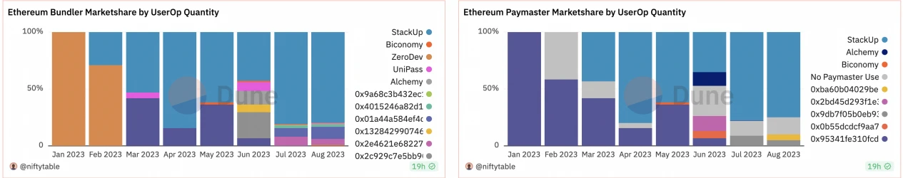 ▪ Bundler 目前都是私有池,无公共池,目前仅 stackup 运营好且盈利,Biconomy 一般;
