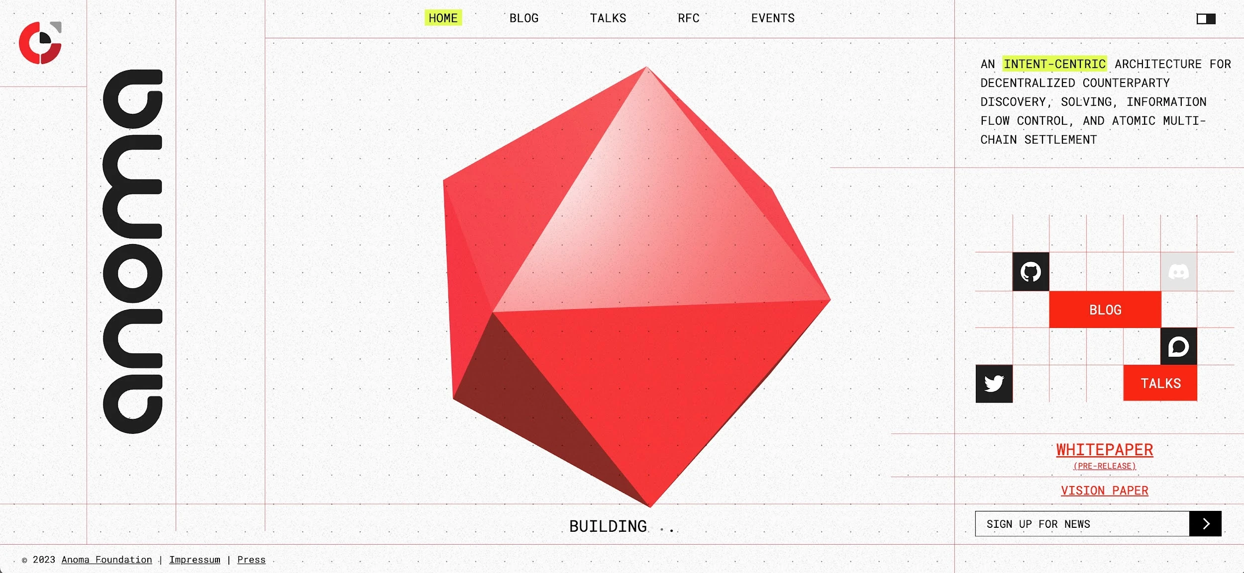 据 23 年 5 月 31 日 Coindesk 报道, Anoma Foundation 目前已顺利完成了由 CMCC Global 、 Electric Capital 等 14 家资本累计 2500 万美元的投资。该项目于 22 年 8 月公布的白皮书中就已提出了意图的架构:Intent Gossip Layer 意图传播层( Gossip 这里暂译为传播,部分翻译解释为八卦)用于传播意图、发现交易对手和匹配执行路径。它的设计为默认的验证路径,其所有的传播(Gossip)信息均由发出者节点签名,从而形成一个可追溯到发起者的签名链,这一功能在抗审查和 Dos 攻击(拒绝服务攻击,是一种用于破坏合法用户访问目标网络或网站资源的方法)显的尤为重要,所以谈及 Intent-Centric 的实现,Anoma 是必不或缺的。