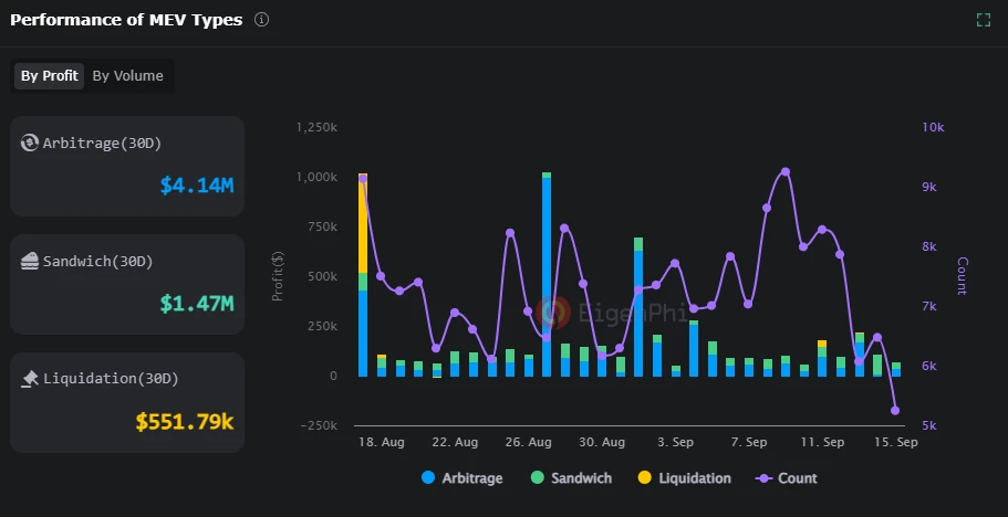 MEV 是这个行业探索多年无法绕开且重要的话题,如何缓解 MEV 带来的不利因素也在不断探索当中,本文将在下一个章节“实现意图的通用解决方案”中展开说明。根据 EigenPhi 截止 23 年 9 月 15 日数据,链上 MEV 的获利水平仍存在较大的收益空间, 以太坊合并后仅使用 Flashbots 的出块节点获利已超 20 万枚 ETH,所以这是一块非常巨大的利益分配蛋糕。