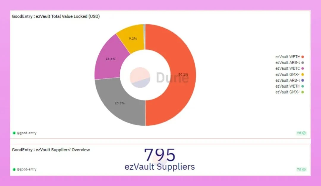 - 4 个主要金库($WETH、$WBTC、$ARB、$ GMX )