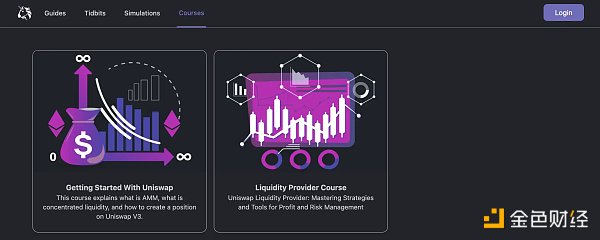 课程(Courses):目前网站的第四部分是两集课程教学,可以让你深入了解 Uniswap 的结构化课程,包括从《Uniswap 入门》中的基础概念到《流动性提供商课程》中的掌握策略。