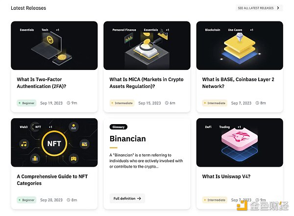 作为加密世界 CEX 的龙头,Binance 也有自己的教育平台——Binance Academy。这里也有课程和教学内容的推出,但从网站导航栏的「Learn & Earn」、Partnership 就可以看出,Binance Academy 相比于 Uniswap University 最大的不同在于生态更加复杂,想要的也更多。