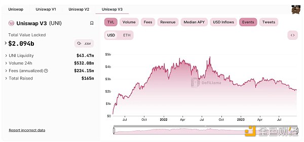 但随着越来越多成长起来的 DEX 争夺市场份额,一家独大注定无法持续,这意味着继续优化 DEX 并挤压现有市场的增长将不足以继续其目前的轨迹。最直接的表现是,Uniswap 的流动性持续不足。