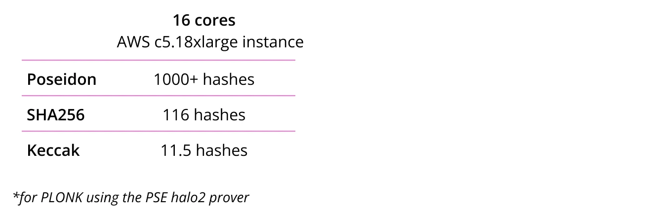 Poseidon 哈希函数在证明生成方面具有显著的速度优势。