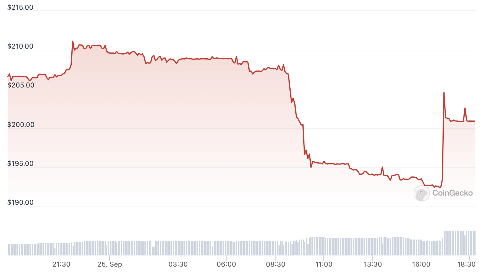 但若有人真的对 Mixin 进行长期投资,恐怕却会受到这一项目的暴击。Coingecko 数据显示,XIN 代币 ATH 价格 2095 美元,现价 200 美元,已跌去超 90% 。