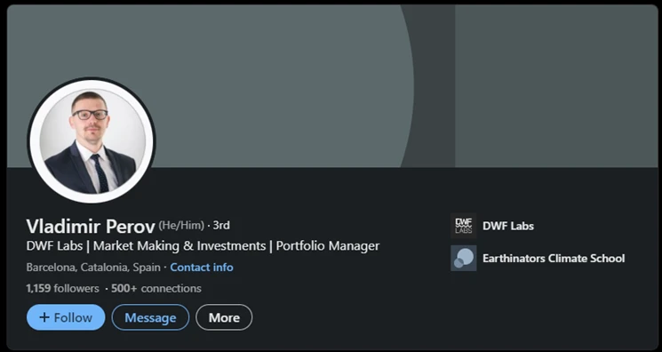 Grachev 还领导了一个名为 http:// Export.online 的有可疑之处的项目,该项目原本打算推出1C0,但由于 2018 年的熊市而不得不打消。一些项目投资者报告称 Grachev 挪用了大约 15.7 万美元的投资。根据 LinkedIn 资料显示,Andrei Grachev 是该组织的首席执行官,Vladimir Perov 是首席技术官。 Vladimir Perov 现在也在 DWF Labs 工作。