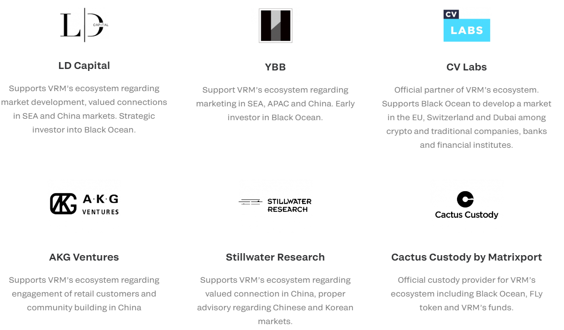 以下是 VRM 的合作伙伴名单,其中也包括 LD Capital 、YGG、 AKG Ventures 这三家中国背景的投资机构。