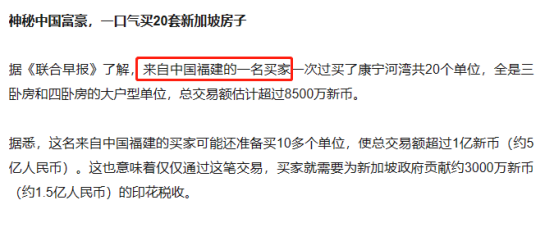 康宁河湾大额交易震惊新加坡,来源联合早报