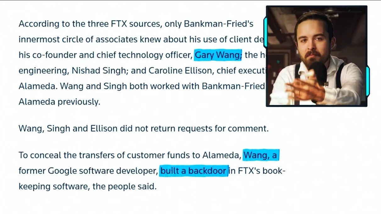 神秘亚裔联创兼 CTO Gary Wang, 详见《 FTX 被盗迷踪:神秘的 CTO Gary Wang 是谁? 》 ;