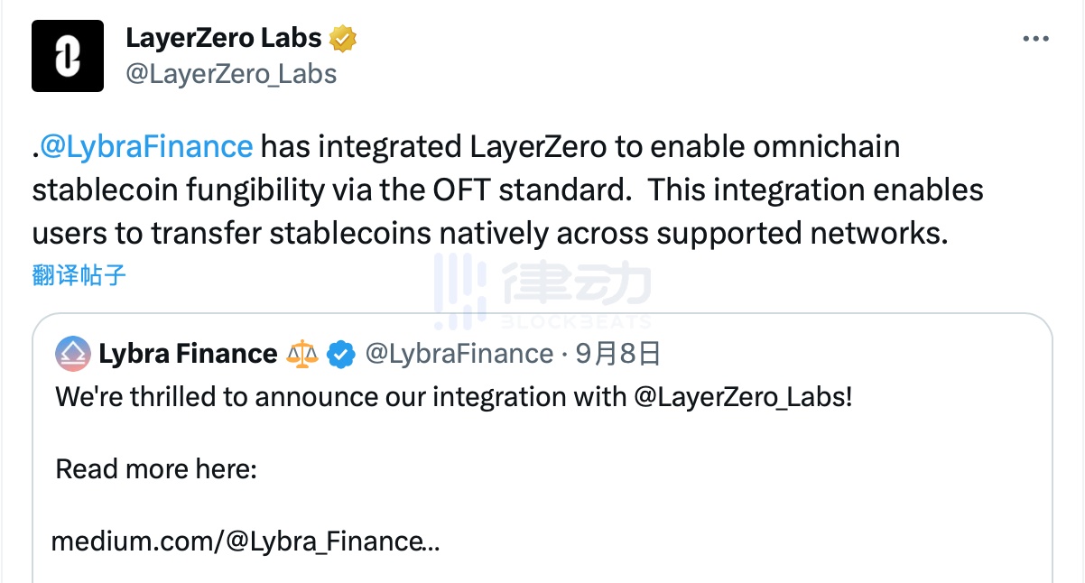 9 月 9 日,据官方消息,LSD 稳定币协议 Lybra Finance 宣布与 LayerZero OFT 标准集成,OFT 标准将引入 peUSD——eUSD 的新 DeFi 实用版本。