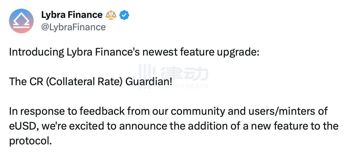 6 月 4 日,LSD 稳定币协议 Lybra Finance 推出抵押率(CR)监控功能,当用户的抵押率降至特定阈值以下时,它会自动偿还部分用户债务,一旦抵押率返回到预定水平,此自动还款功能将停止,该功能旨在为用户提供额外保护机制,以抵御波动市场中的清算风险。