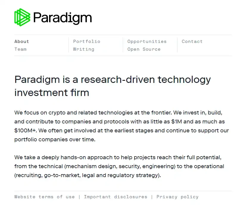 虽然 Paradigm 曾更改网站表述,将其仅专注于加密货币转向也包括人工智能等「前沿」技术。但 Fred 和 Matt 后来表示,他们坚信会长期留在加密领域。「虽然有些人可能会觉得它有争议,但我们坚信加密货币将成为一个重要趋势。事实上,我们认为它是未来 20 年最重要的技术趋势。」