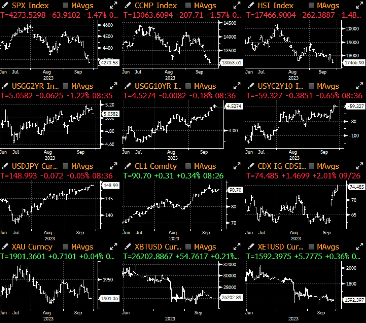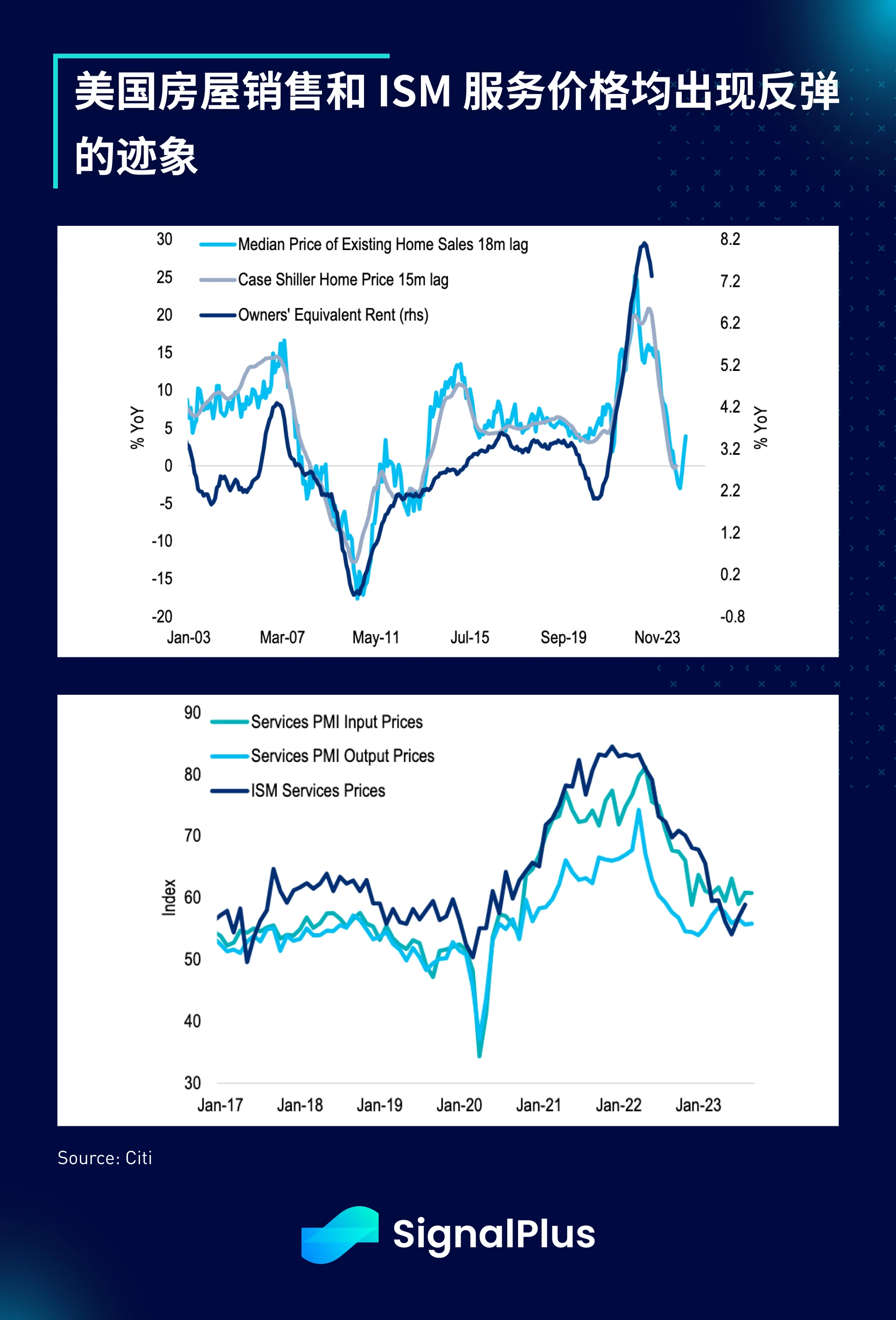 此外,昨天 CoreLogic 20 座城市房价指数出现反弹(+ 0.13% ),引发了对于价格压力已触底并开始加速的担忧,住房价格、ISM 服务价格和二手车价格的反弹以及原油价格处在 90 美元高点都增加了 CPI 在年底和 2024 年第一季回升的可能性。