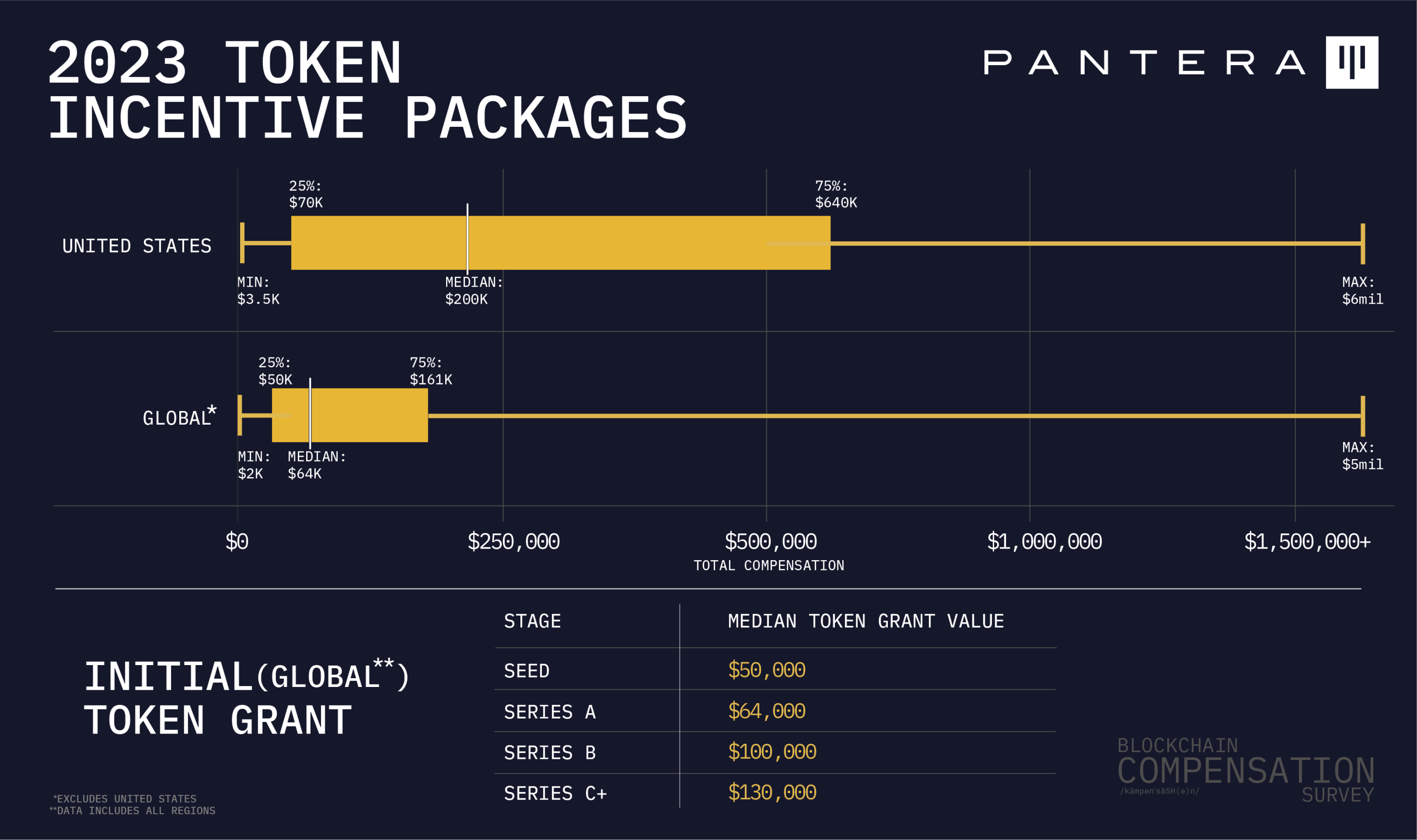 对于高管职位,代币资助中位数为 130 万美元,最高的超过 500 万美元!