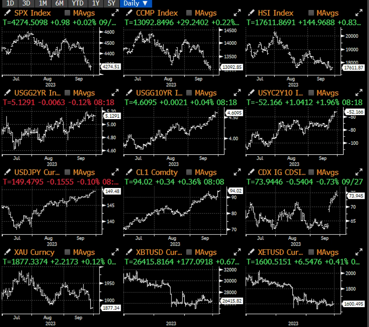 展望未来,我们可能会在月底看到像昨天 SPX 那样的缓解性反弹,毕竟各种股票和债券的短期技术指标都显示出超卖信号,然而,基于当前的市场情况,我们认为唯一适当的操作是保持平仓或做空,试图抄底可能会徒劳无功。此外,共和党似乎无法达成共识,美国政府最早可能在本周末进入部分停摆状态,为已经受到宏观因素打击的市场增添了更多不确定性。