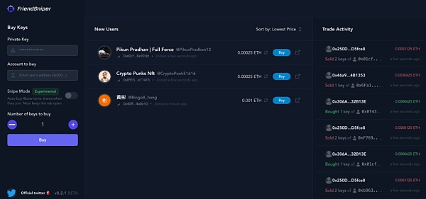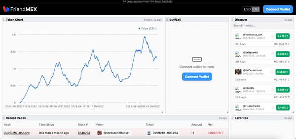FriendMEX提供购买Key,查看Key价格走势,显示实时交易等服务,是由前Paradigm的研究员 Anish Agnihotri 专门为交易Key开发的项目。