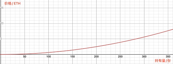 Key 的定价没有采用传统的订单簿或者去中心化交易所常用的 AMM 恒定乘积模型来定价,而采取了基于当前Key在平台上的总持有量的固定价格模型,即Key的价格只与持有者数量有关。 下文用S表示当前持有量 。