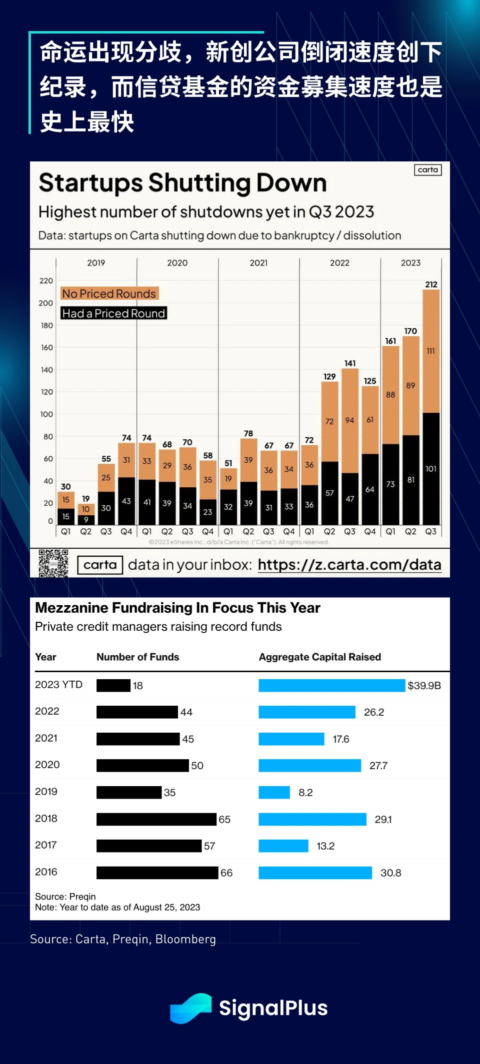 谈到更好的市场情况,第三季度的融资数据显示出不同领域命运的分歧,新创公司关闭/倒闭的数量创下多年来新高,而私人信贷(贷款)基金则出现历史上最好的资金募集结果;随著量化宽松时代结束,预计利率在可预见的未来都会保持在高位,资本将流向储蓄工具或其他生息工具,高利率对投资心态的影响将是深远的,不过这些影响可能要到 2024 年才会完全体现。