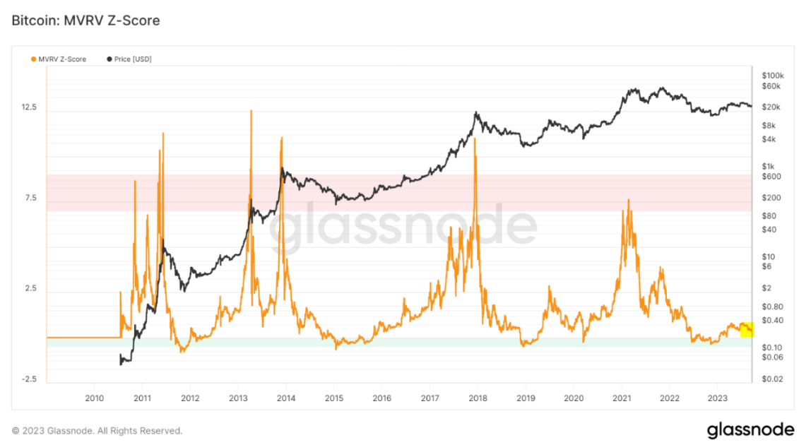 下面快速浏览一下链上信号之一:MVRV。市场价值与已实现价值之比目前为 0.41 。