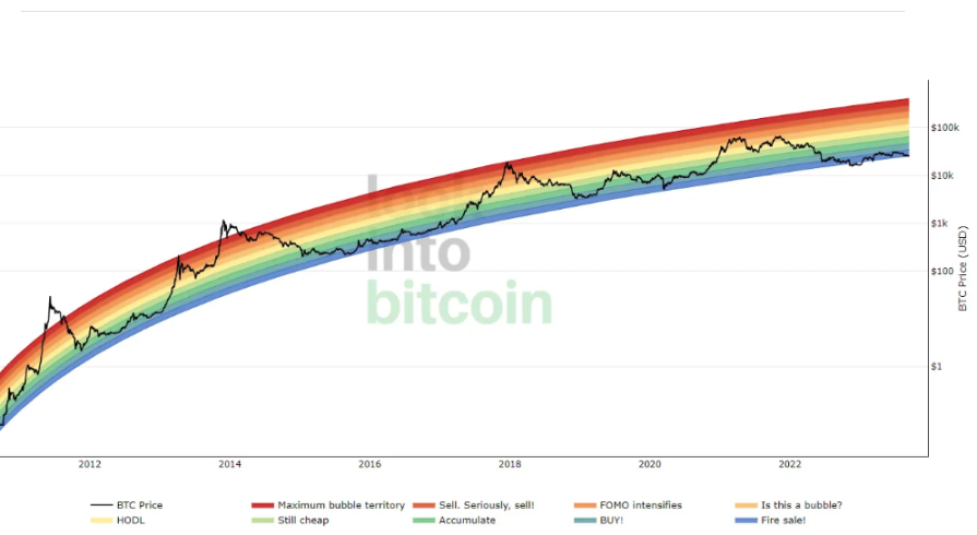 比特币彩虹价格图表,来源:Look Into Bitcoin