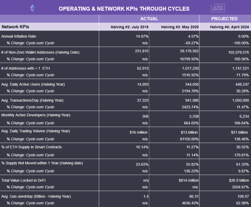 为了突出各个周期中运营和网络 KPI 的增长,以下是一些以太坊数据的快速视图: