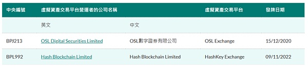 “持牌平台名单”列出了获证监会正式发牌的虚拟资产交易平台运营者的名称,目前该名单仍然仅包括两家公司,即OSL数字证券有限公司及Hash Blockchain Limited,这两家公司分别于2020年12月15日及2022年11月9日获得虚拟资产牌照。