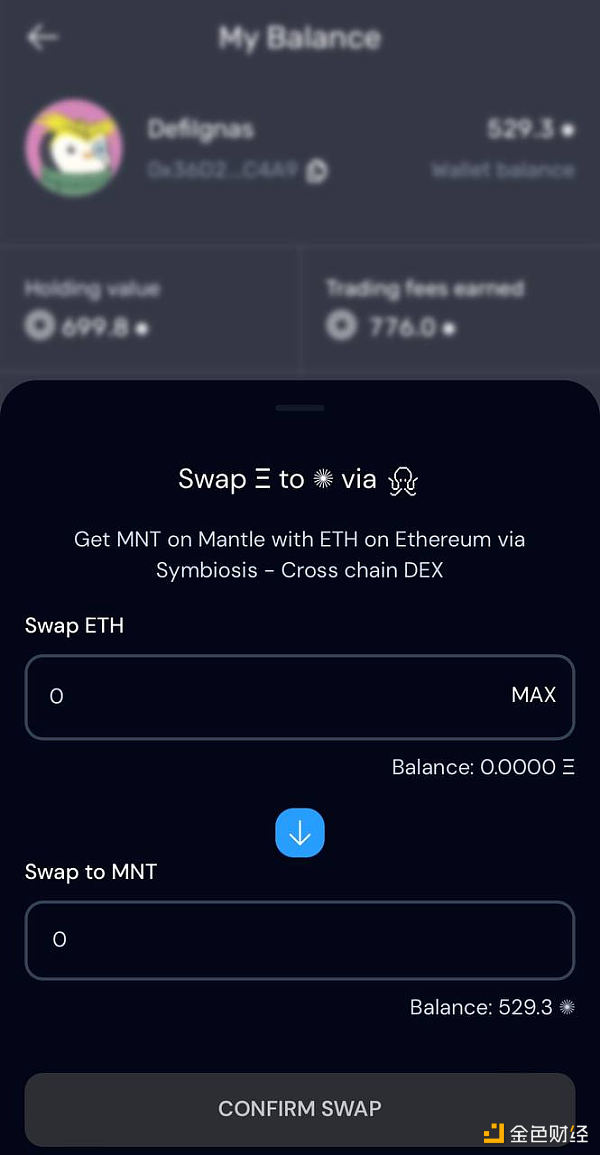 昨天下班回家的路上,我想到了SocialFi未来可能发展的一个关键点。Fan Tech简单升级了其dapp,现在用户可以通过Symbiosis跨链DEX在自己的钱包中直接用以太币ETH换取Mantle L2网络上的MNTToken了。