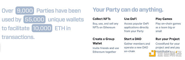 例如,PartyDAO允许任何人基于特定的任务创建一个“派对”。您可以收集、购买、使用和出售NFT,访问DeFi应用程序,在链上玩游戏,创建群组钱包,并为项目进行众筹,同时支付贡献者。