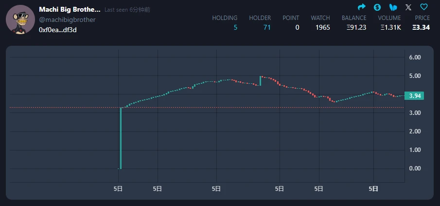 然而机器人和麻吉的联手买入,却给后面 key 的持有者带来了巨大的问题:第一个自然买入 key 的玩家,算上买入卖出的费用之后甚至没有盈利。而账号上线之后黄立成也并未更多的经营自己的账号,对于大多数的 Holder 而言,“接盘”可能在短期内是一个不得不面对的现实。