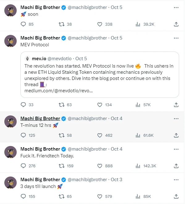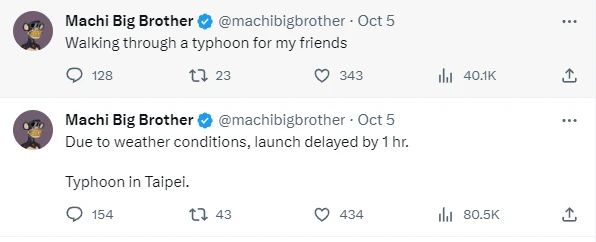 不得不说提前抢入还是有一定的效果的,仿盘的价格甚至一段时间占领了 Trending 榜的第一名,而紧跟其后的是 Machi 弟弟的账号。
