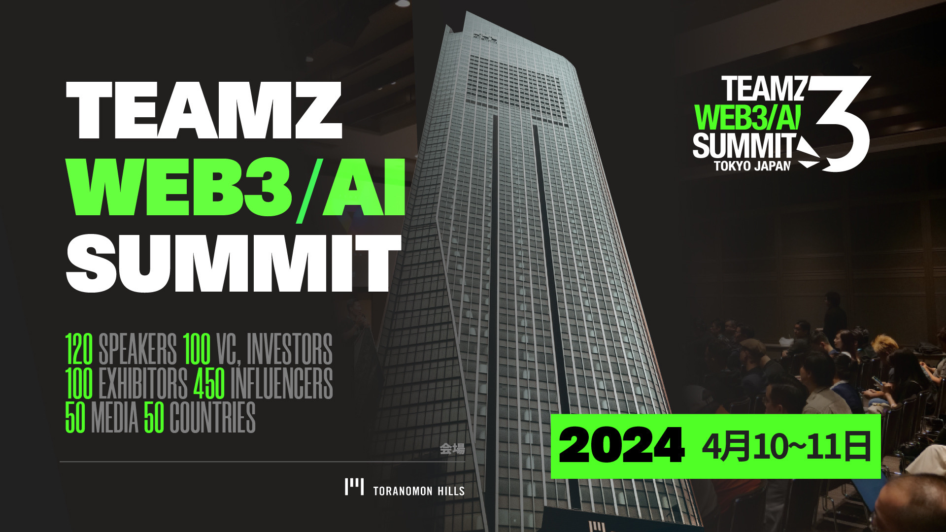 TEAMZ Web3/AI Summit将于2024年4月10日11日在东京虎门Hills会议中心召开